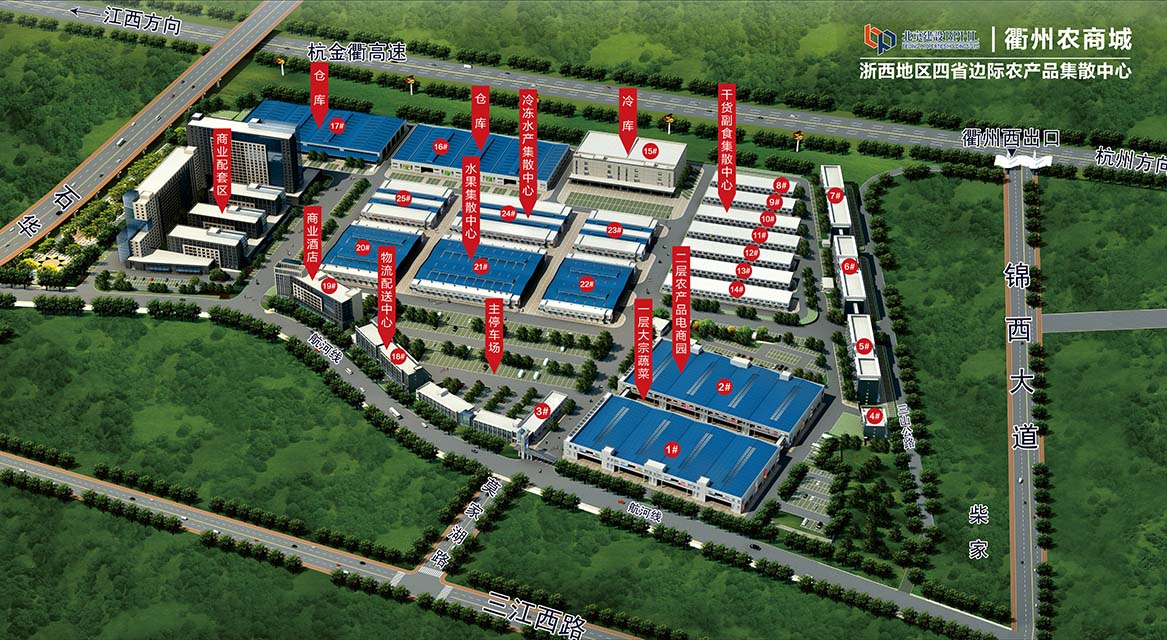 • 衢州農商城占地面積 284,437 平方米,項目高起點(diǎn)規劃,為農產(chǎn)品流通業(yè)者定制化設計,計劃建設面積 300,779.77 平方米。構建五大功能區塊:農產(chǎn)品交易區,農產(chǎn)品電子商務(wù)區、冷鏈倉儲區、物流配送區和商業(yè)配套區,建設四省九地市一級農產(chǎn)品批發(fā)市場(chǎng),同時(shí)積極發(fā)展農產(chǎn)品配套服務(wù)產(chǎn)業(yè),發(fā)揮產(chǎn)業(yè)聚集效應,打造農產(chǎn)品產(chǎn)業(yè)集群。